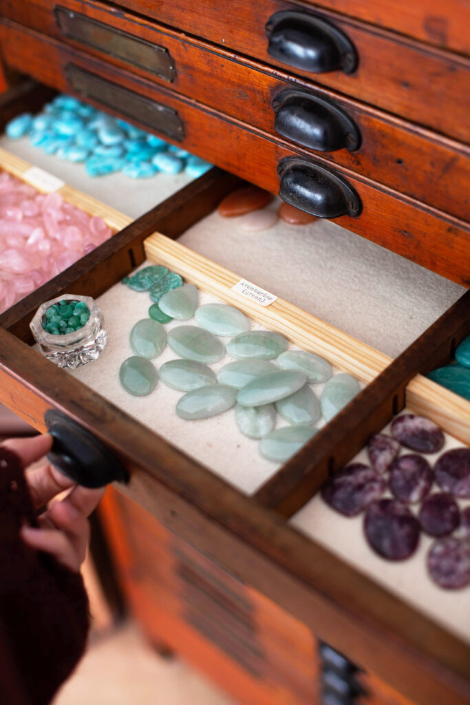 Each new offering will be an ode to a different poem that I have carried in my pocket over the years. Mossy agates for Tennyson, bark textures for Frost, black druzy for Service, turquoise rounds for Dickinson, and more.
